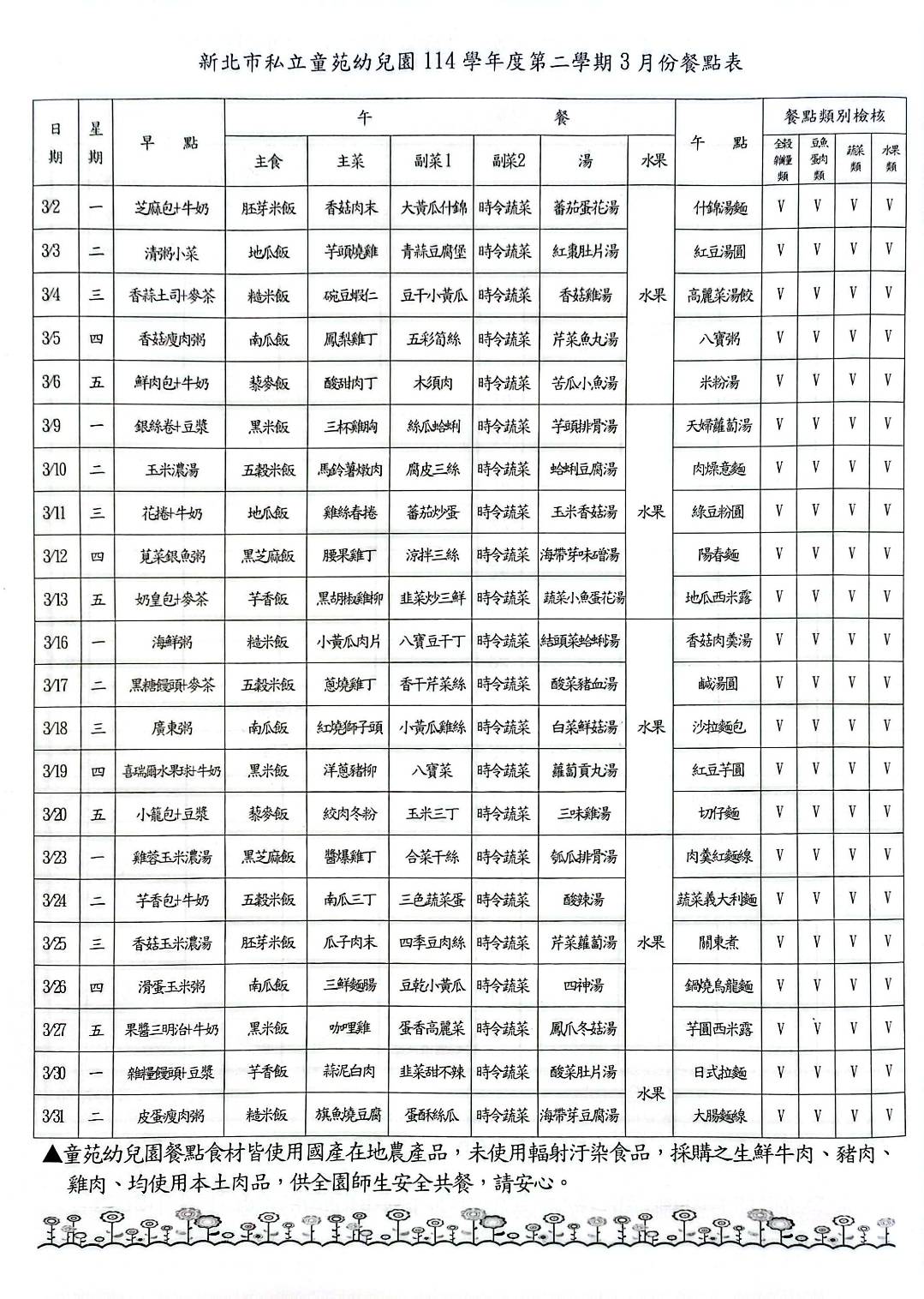 115年3月餐點表